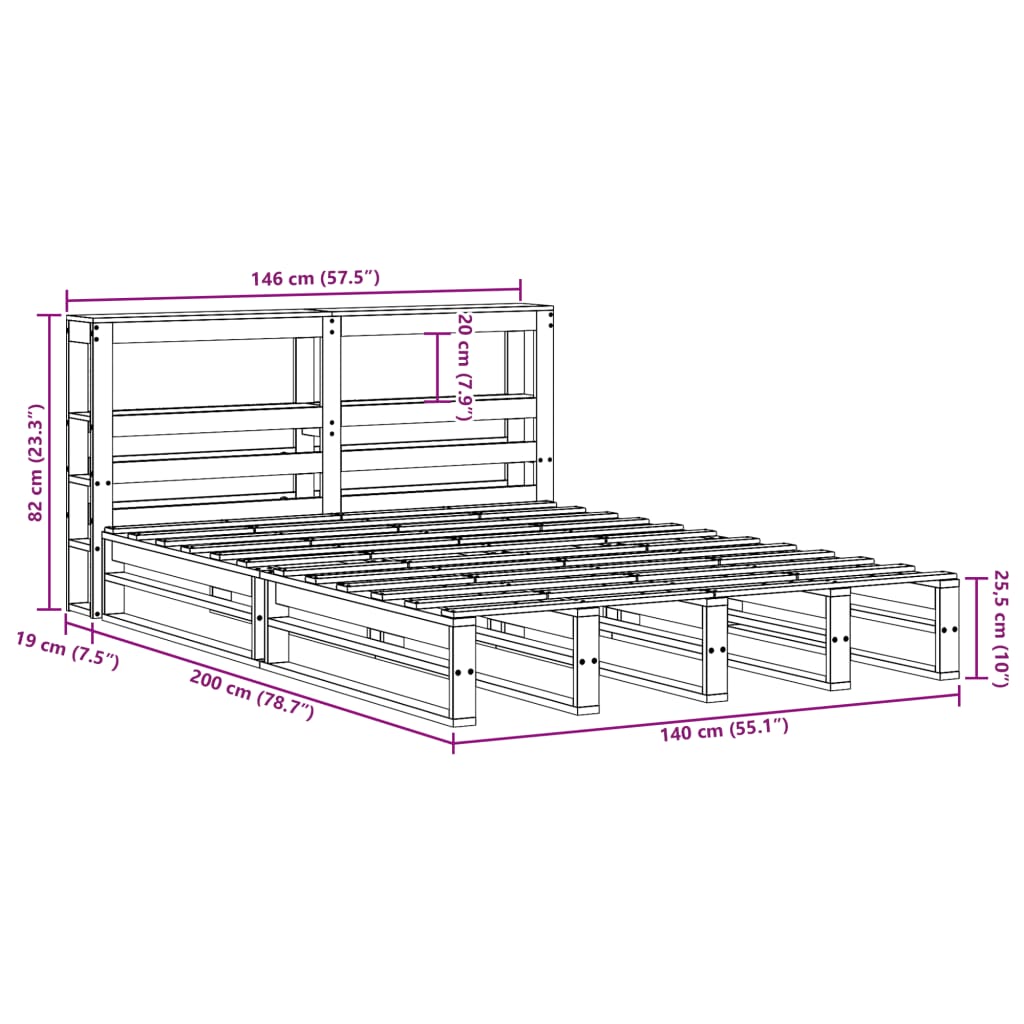 - Totale afmetingen bed: 219 x 146 x 82 cm (L x B x H)