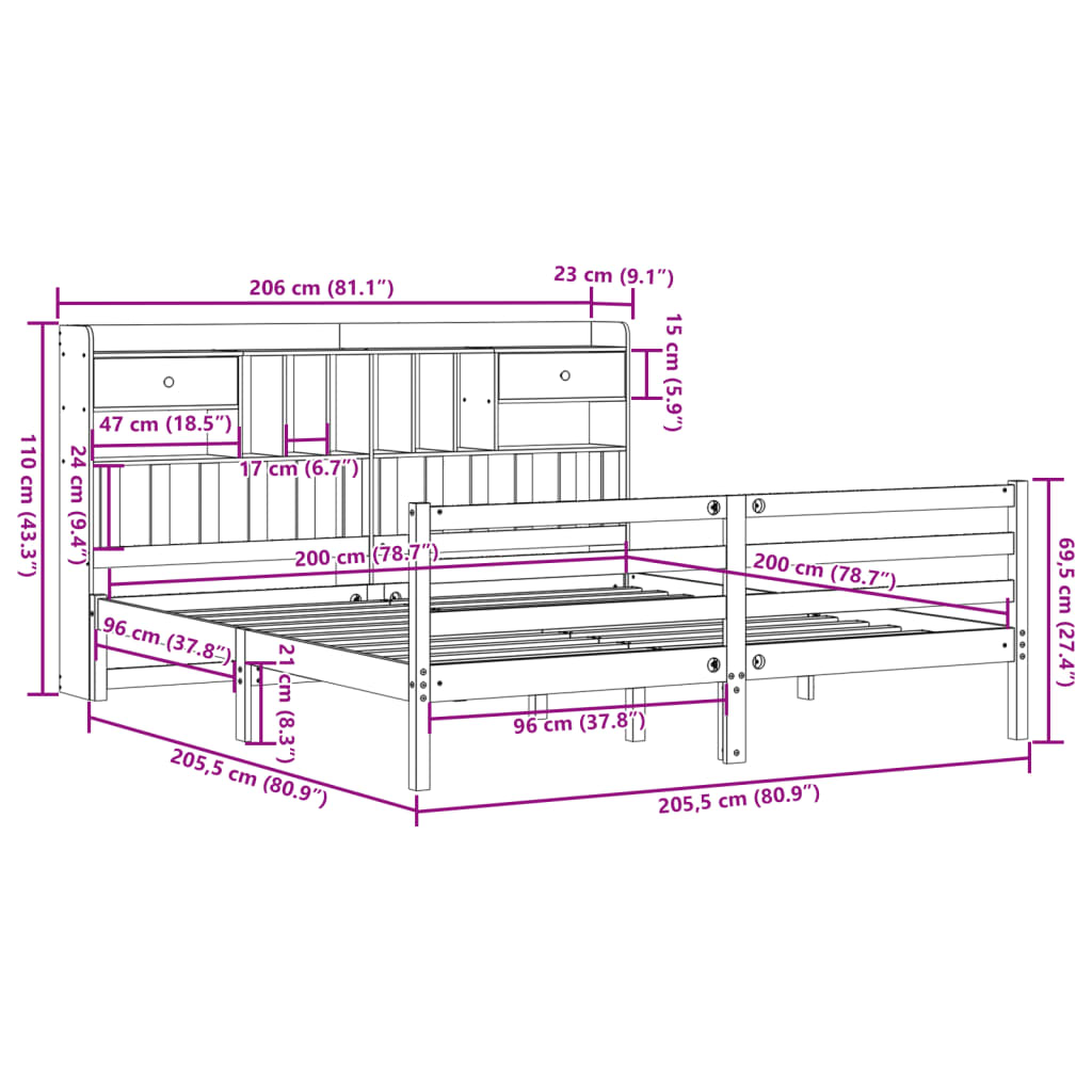 - Afmetingen: 206 x 23 x 110 cm (B x D x H)