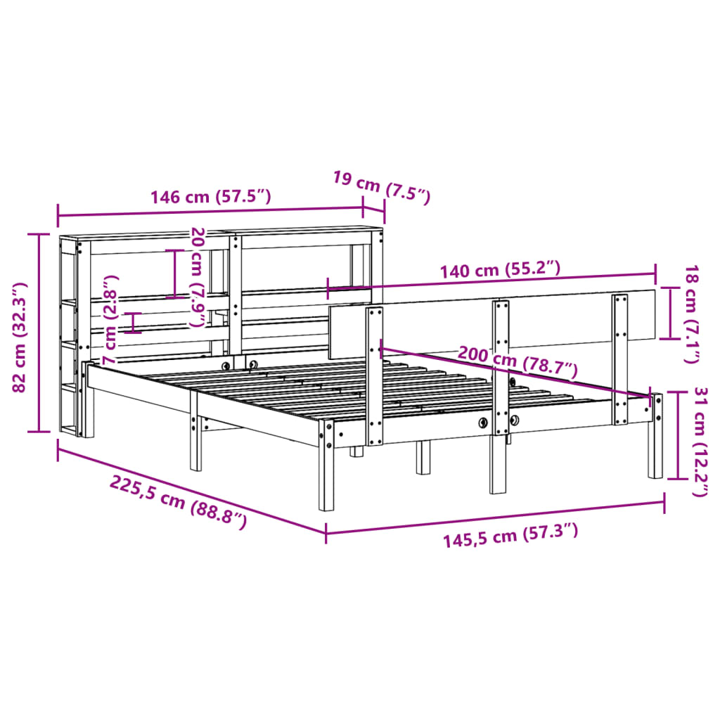 - Materiaal bedframe: massief grenenhout (onbehandeld)