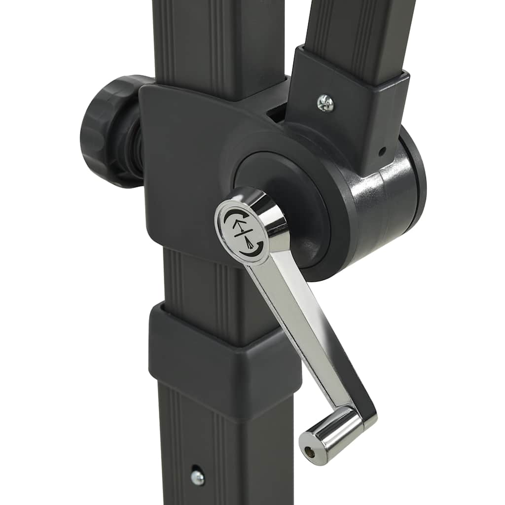 Het parasoldoek is gemaakt van uv-beschermend en anti-vervagend polyester waardoor het je optimale bescherming tegen de zon biedt en het gemakkelijk schoon te maken is. De parasol beschikt over een stevige kruisvoet die bijdraagt aan de stabiliteit. Het exclusieve ontwerp van de parasol stelt je in staat om de parasol te kantelen en 360 graden te draaien om zo de zon te kunnen blokkeren. De sterke aluminium paal, samen met de 8 baleinen, maakt de parasol zeer stabiel en duurzaam. Deze tuinparasol kan eenvoudig geopend en gesloten worden dankzij het zwengelmechanisme. De parasol heeft 24 LED''s die, na zonsondergang, je buitenruimte verlichten en een comfortabele, romantische sfeer creëren.