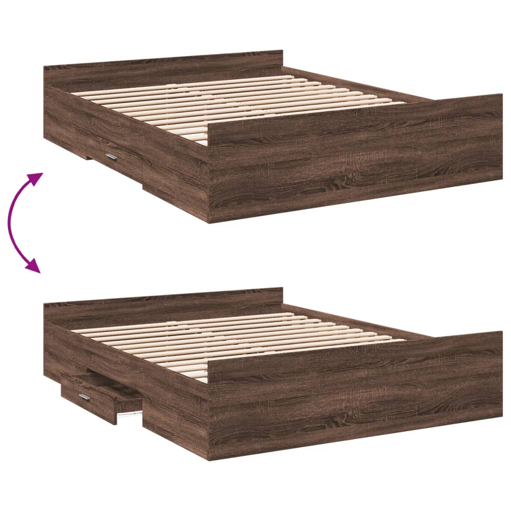 - Duurzaam materiaal: het bedframe is gemaakt van bewerkt hout. Het bewerkte hout is van hoge kwaliteit, heeft een glad oppervlak en is sterk, stabiel en vochtbestendig.