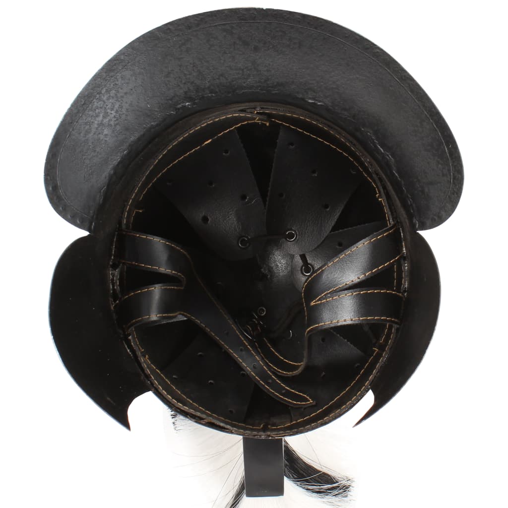 De helm is een exacte replica van een originele, Griekse soldatenhelm. De helm, gemaakt van 18-gauge staal, combineert antieke stijl en stevig materiaal tot een opvallende helm die perfect bij je krijgersoutfit past. Daarnaast is hij een opvallend presentatieobject.
