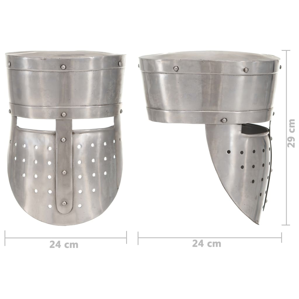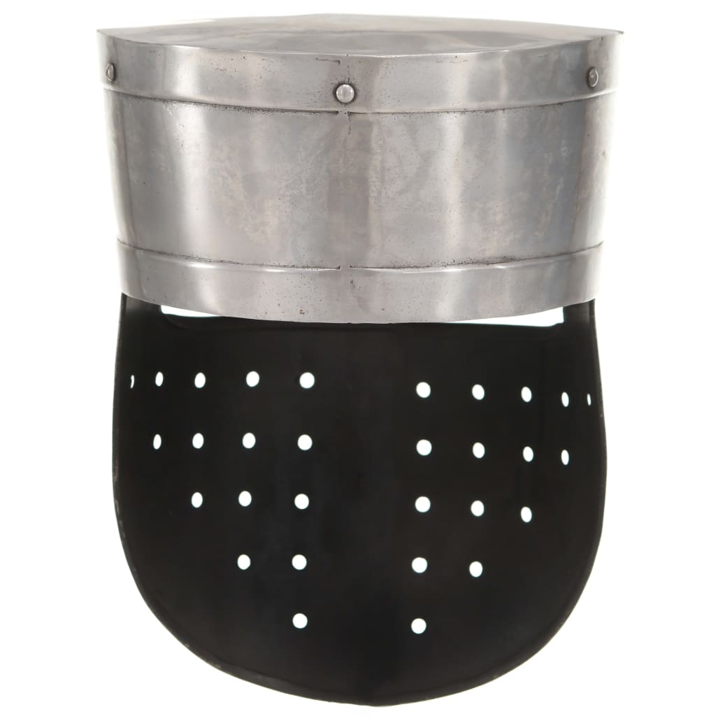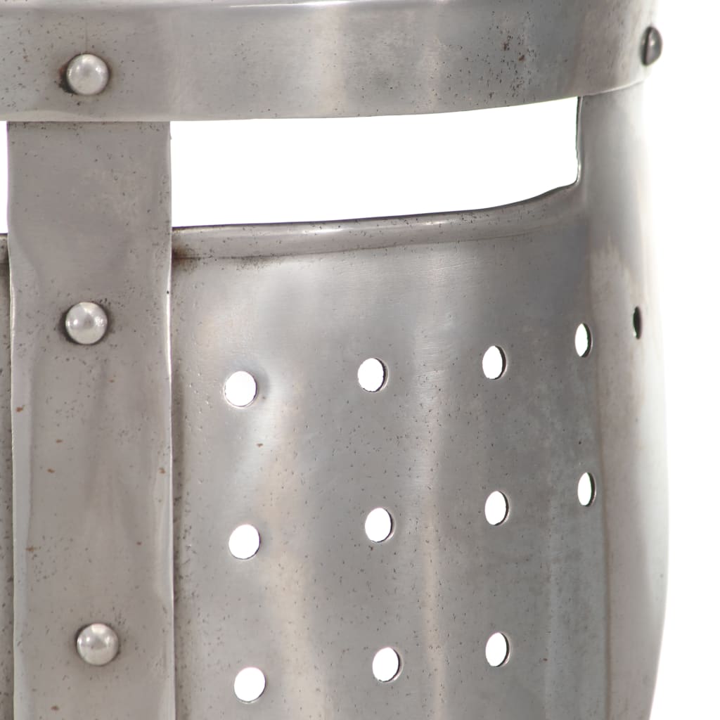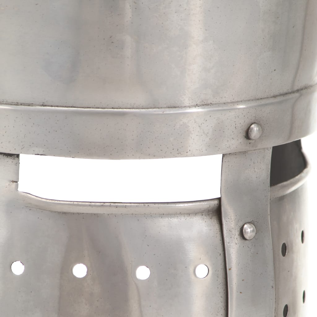 De helm is een exacte replica van een originele, middeleeuwse ridderhelm. Hij is gemaakt van 18-gauge staal en combineert de antieke stijl met stevig materiaal waardoor de helm opvallend is en perfect bij je krijgersoutfit past. Onze helm heeft kleine openingen voor zicht en ventilatie. Bovendien is hij een aantrekkelijk presentatieobject.