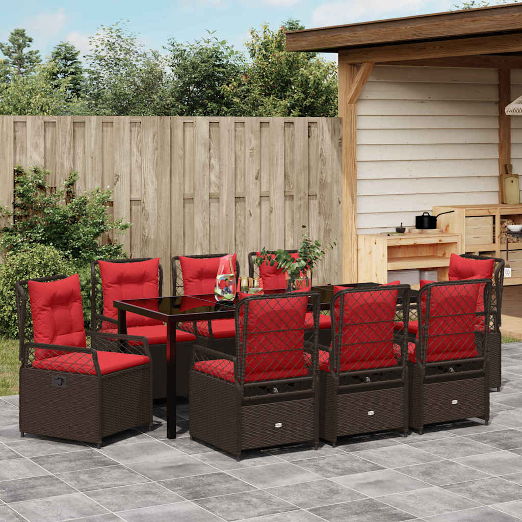 - Materialen: Gemaakt van poly rattan, deze eetset kan goed tegen verschillende weersomstandigheden en is perfect voor de zomer. Het glazen blad voegt klasse toe en past mooi bij het moderne ontwerp. Sterke stalen onderdelen zorgen voor een stevige basis, zodat het stijlvol blijft, zelfs bij regelmatig gebruik.