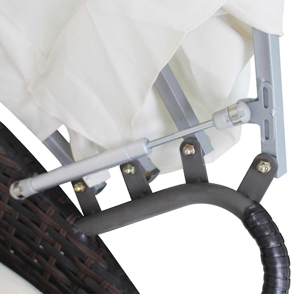 - Inclusief Componenten: Het ligbed bestaat uit verschillende delen, zoals een ligbed met luifel, een ronde poef en twee voetensteunen. Inclusief vier zitkussens en drie extra kussens, levert het een ongeëvenaard comfort dat zich aanpast aan verschillende momenten.