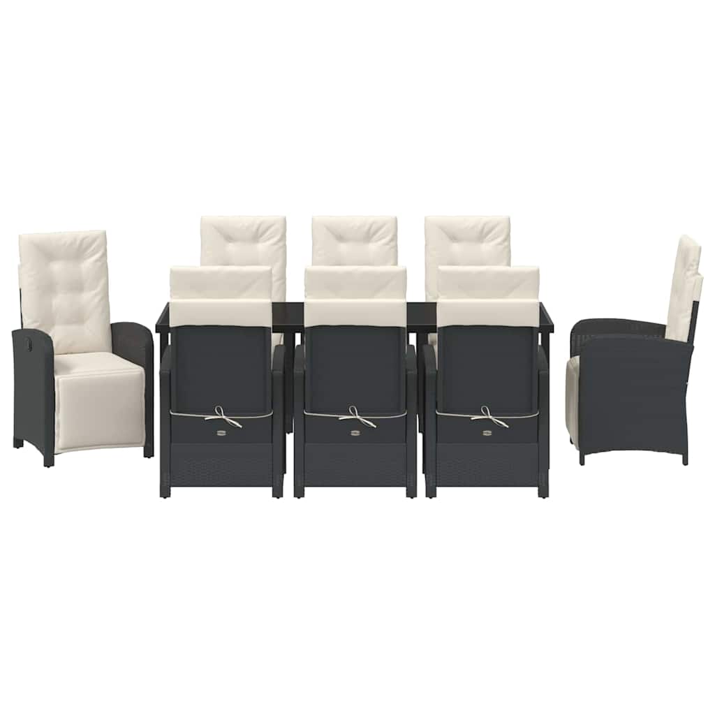 - Componenten: Elk onderdeel is zorgvuldig ontworpen, met comfortabele poly rattan stoelen en rugleuningen. De stevige stalen poten zorgen voor een sterke basis en de glazen tafelbladen geven een strakke uitstraling.