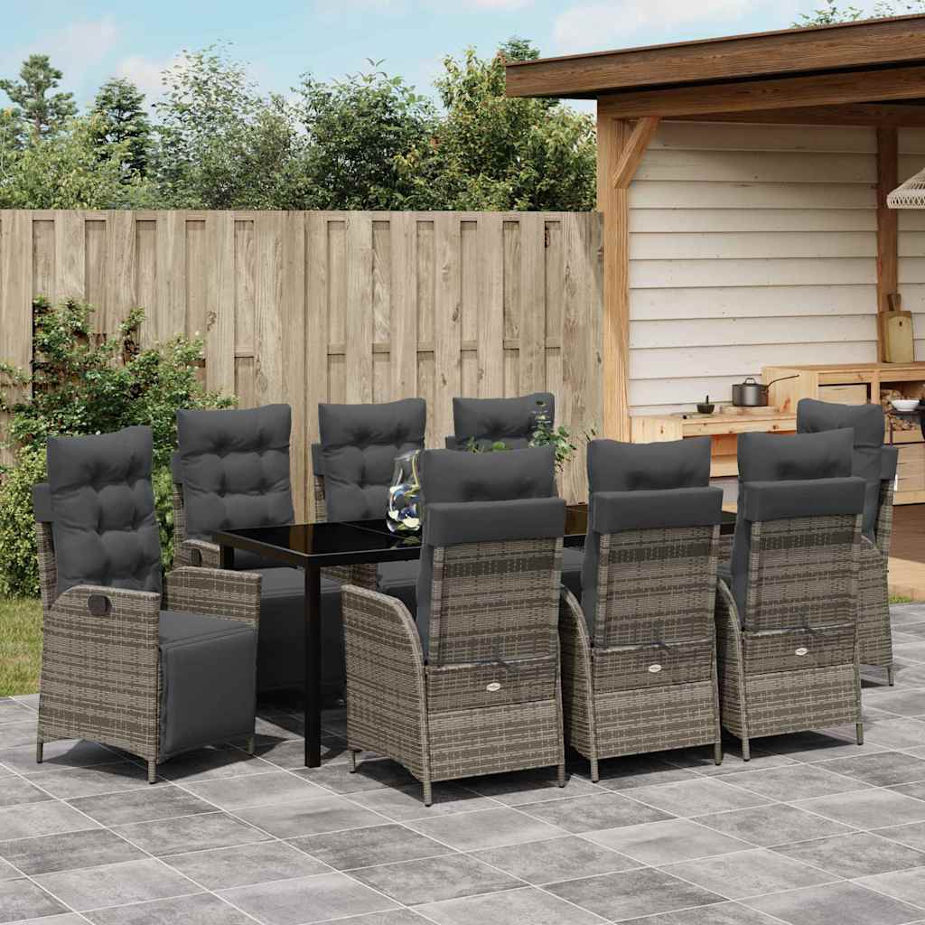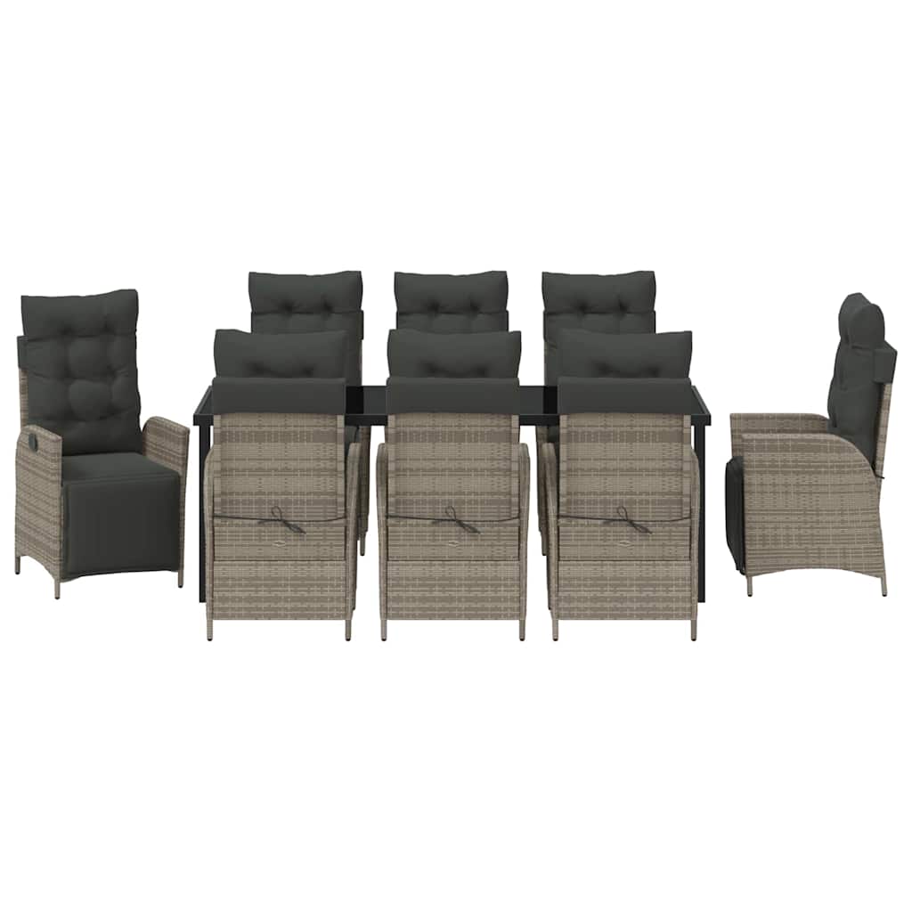 - Componenten & Ontwerp: De verstelbare stoelen hebben afneembare zitkussens, gemaakt van comfortabele polyester met handige ritssluitingen voor eenvoudige reiniging. Het gehard glazen tafelblad voegt een strakke uitstraling toe die perfect past bij het moderne design van de set.