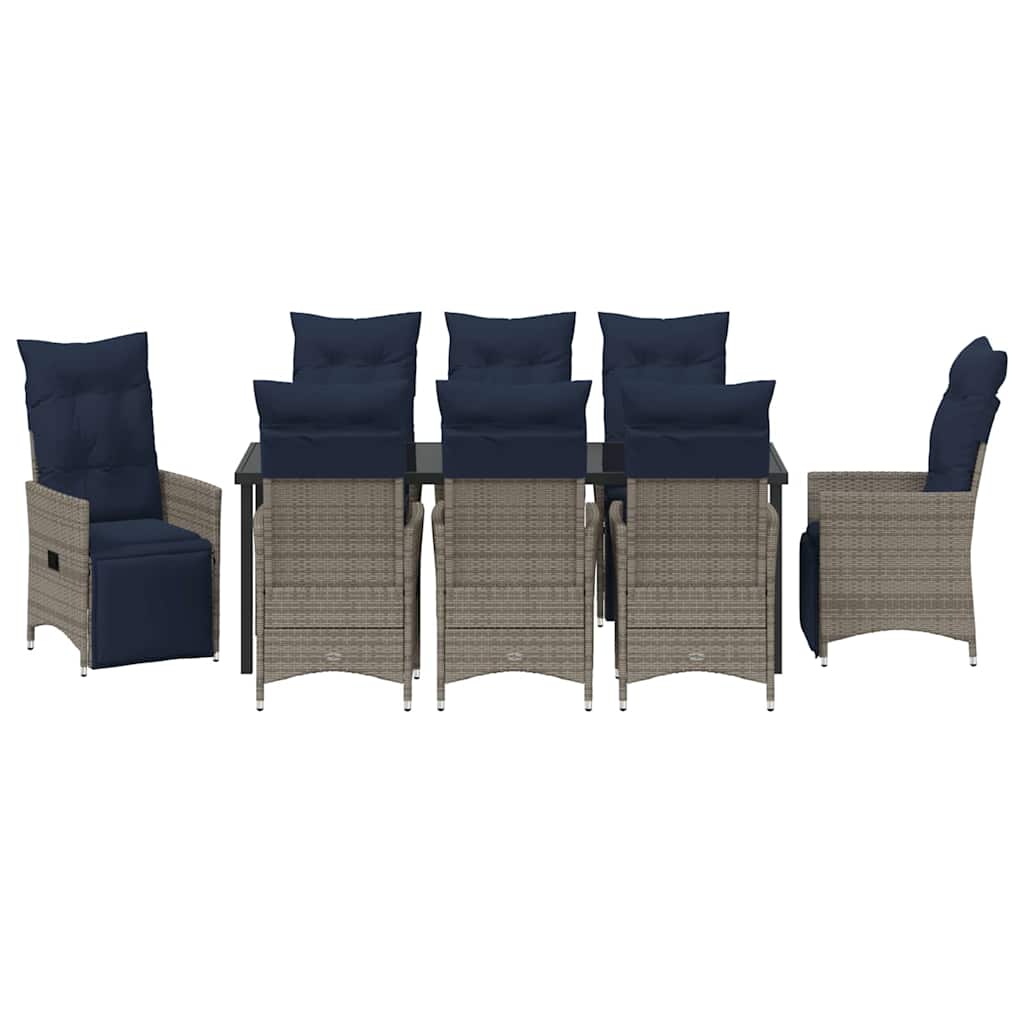 - Veelzijdige Componenten: De set heeft een mooie en stevige rugleuning van poly rattan met stalen poten, wat betekent dat het zowel stijlvol als sterk is. Het mixen van looks en functie is zijn kracht als het om eetcomfort gaat.