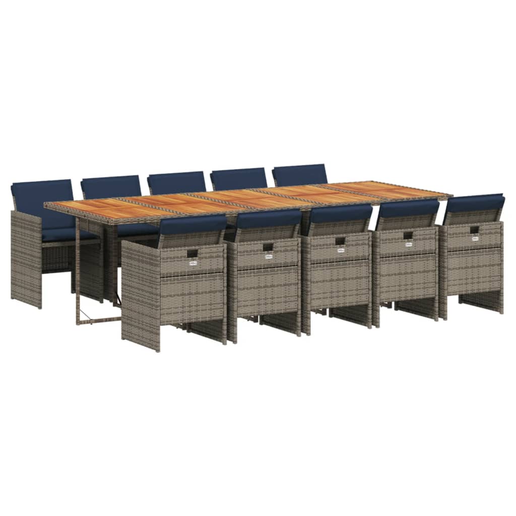 - Materiaal: PE-rotan, gepoedercoat staal, massief acaciahout met een olieafwerking