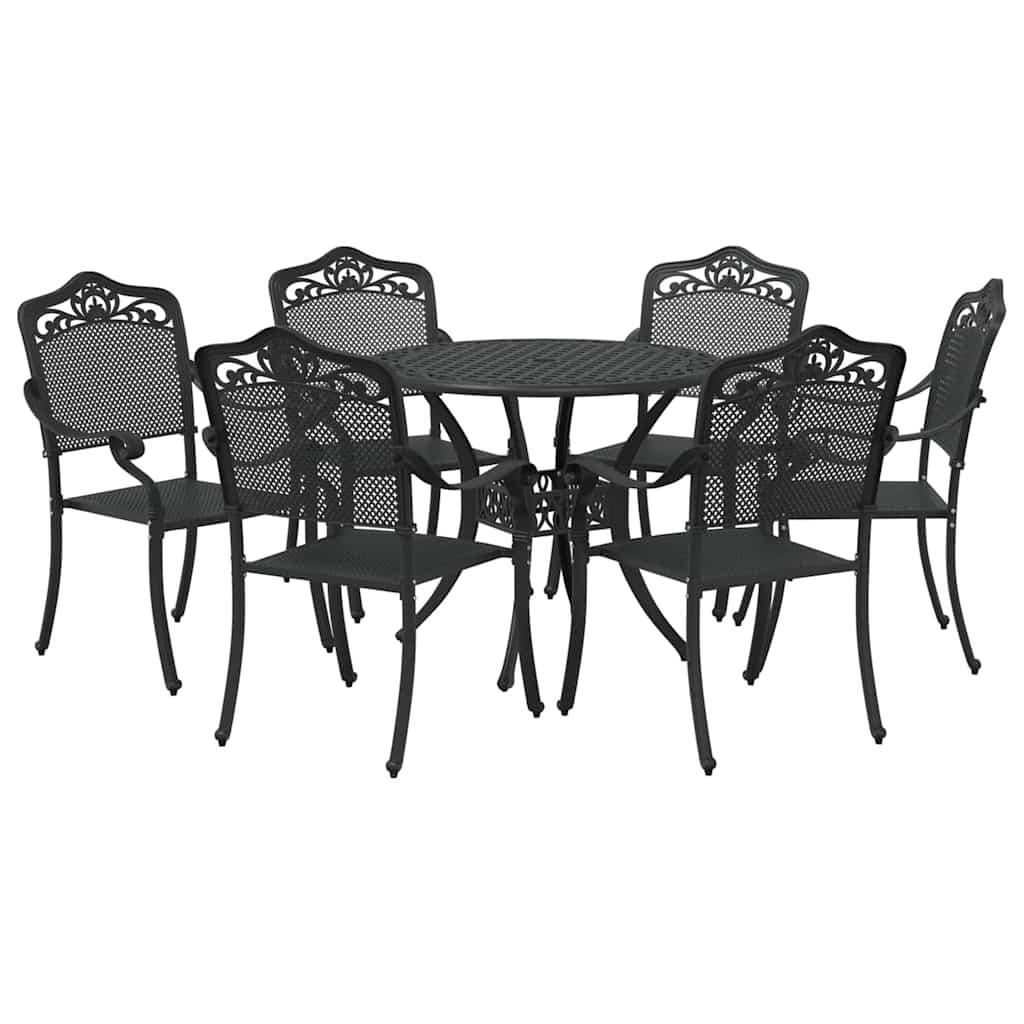 - Kwaliteitsmaterialen: Gemaakt van sterk gegoten aluminium, deze eetset is gebouwd om lang mee te gaan, weerstaat slijtage en blijft mooi, zelfs bij wisselend weer. Het aluminium frame zorgt voor stabiliteit en een mooi uiterlijk, wat bijdraagt aan de duurzaamheid.