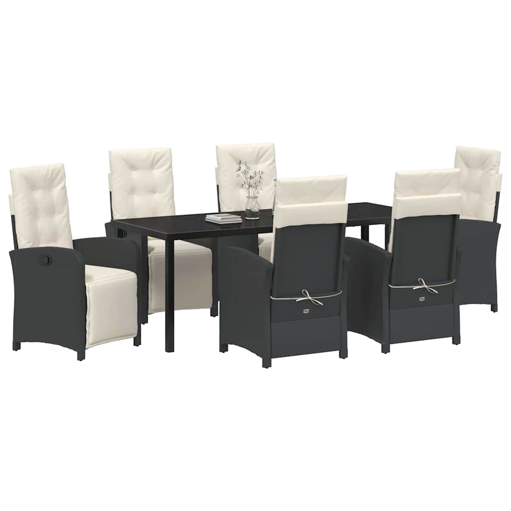 - Componenten: Elk onderdeel is zorgvuldig ontworpen, met comfortabele poly rattan stoelen en rugleuningen. De stevige stalen poten zorgen voor een sterke basis en de glazen tafelbladen geven een strakke uitstraling.