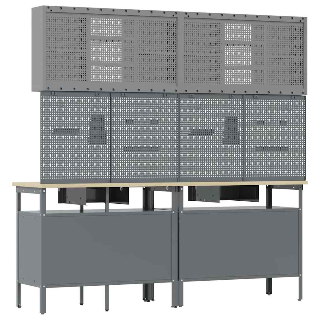 - Efficiënte Opslag Deze werkbank blinkt uit in opslagmogelijkheden. Dankzij de sterke schappen heb je genoeg ruimte om alles goed te organiseren, zodat je snel bij je gereedschap kunt en je workflow soepel blijft bij allerlei klussen.