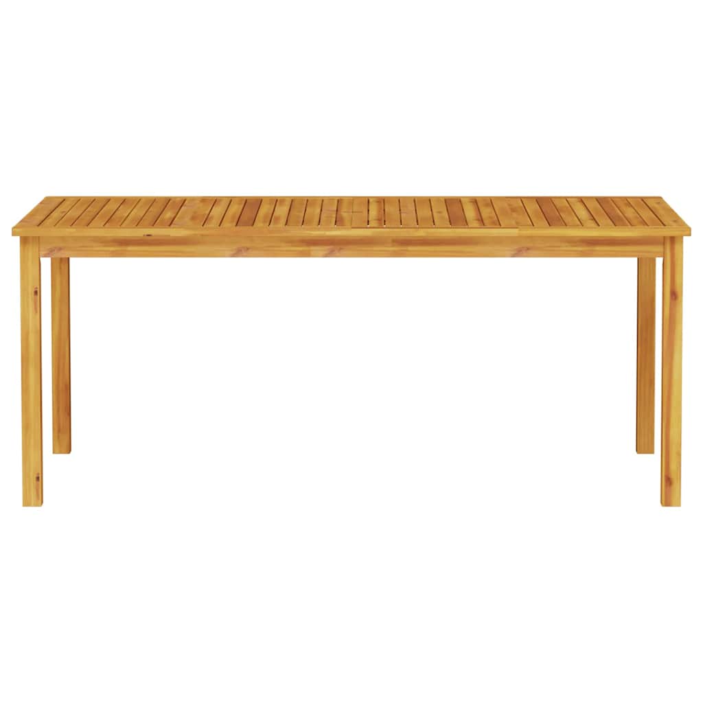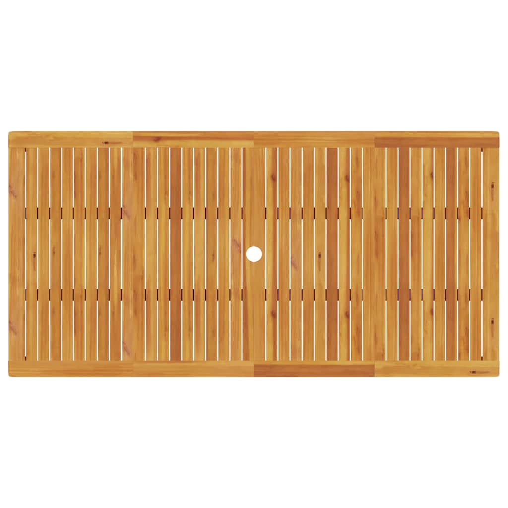 - Materialen: Gemaakt van massief acaciahout, benadrukt deze eetset de natuurlijke schoonheid van het materiaal terwijl het robuustheid en stabiliteit biedt voor alle buitengebruik. Acaciahout is bekend om zijn UV-bestendige eigenschappen, wat ervoor zorgt dat de set zijn uiterlijk behoudt onder zonneschijn, waardoor het een betrouwbare en aantrekkelijke keuze is voor buitenbijeenkomsten.