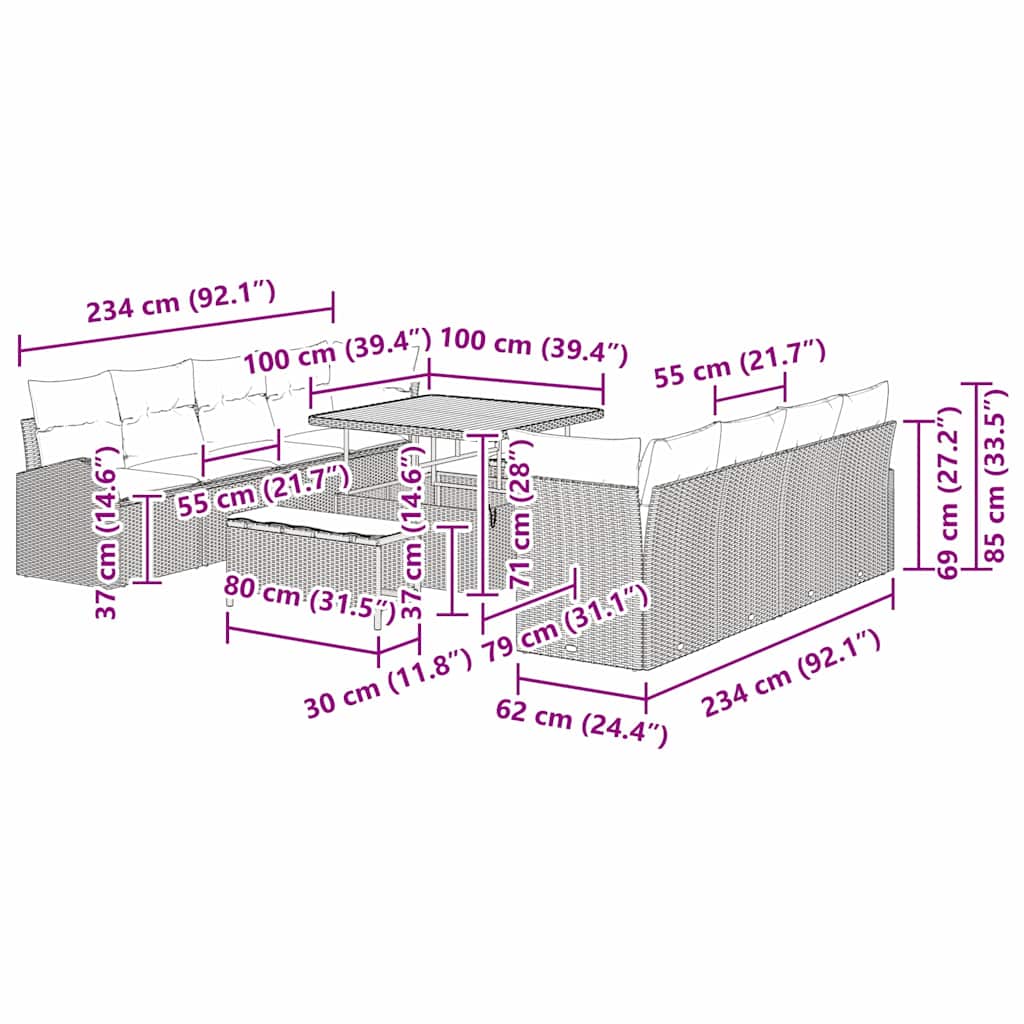 - Compleet Onderdelen: De set komt met verstelbare onderdelen, zoals gewatteerde armsteunen, zittingen en rugkussens. Het poly rattan dat overal gebruikt is, biedt comfort en stijl. De gepoedercoate stalen poten zorgen voor stabiliteit terwijl ze er ook goed uitzien.
