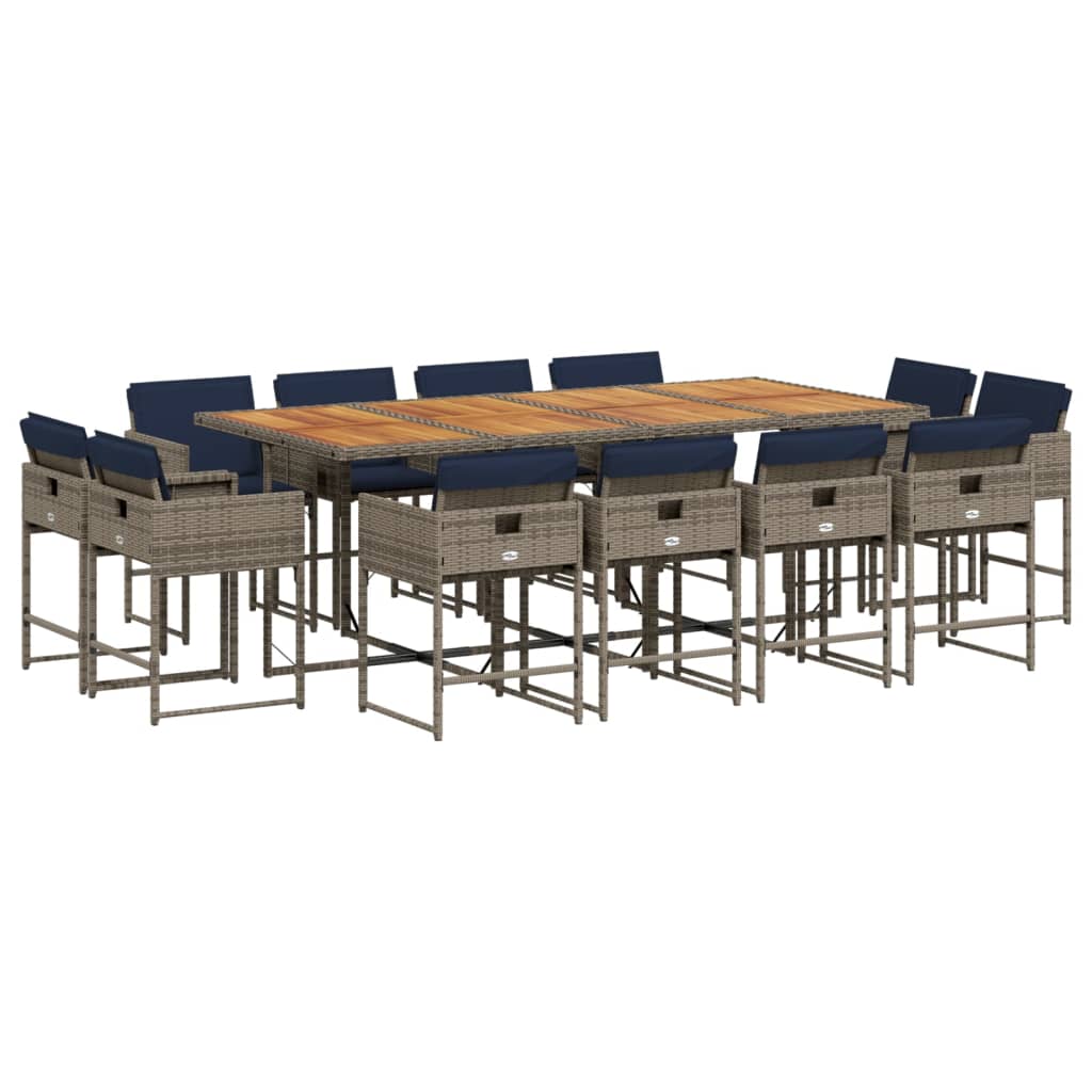 - Materiaal: PE-rotan, gepoedercoat staal, massief acaciahout met een olieafwerking