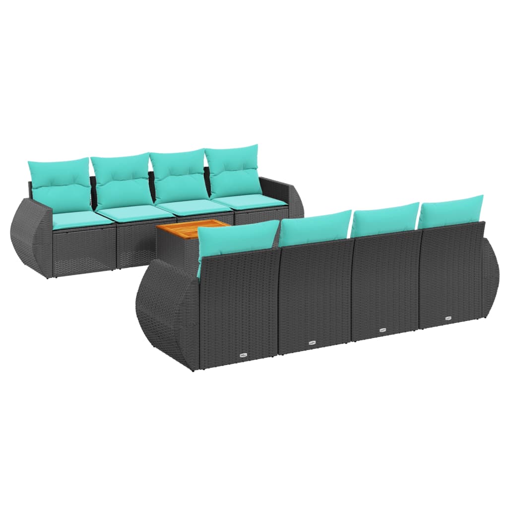 - Materiaal: PE-rotan, gepoedercoat staal, massief acaciahout met een olieafwerking