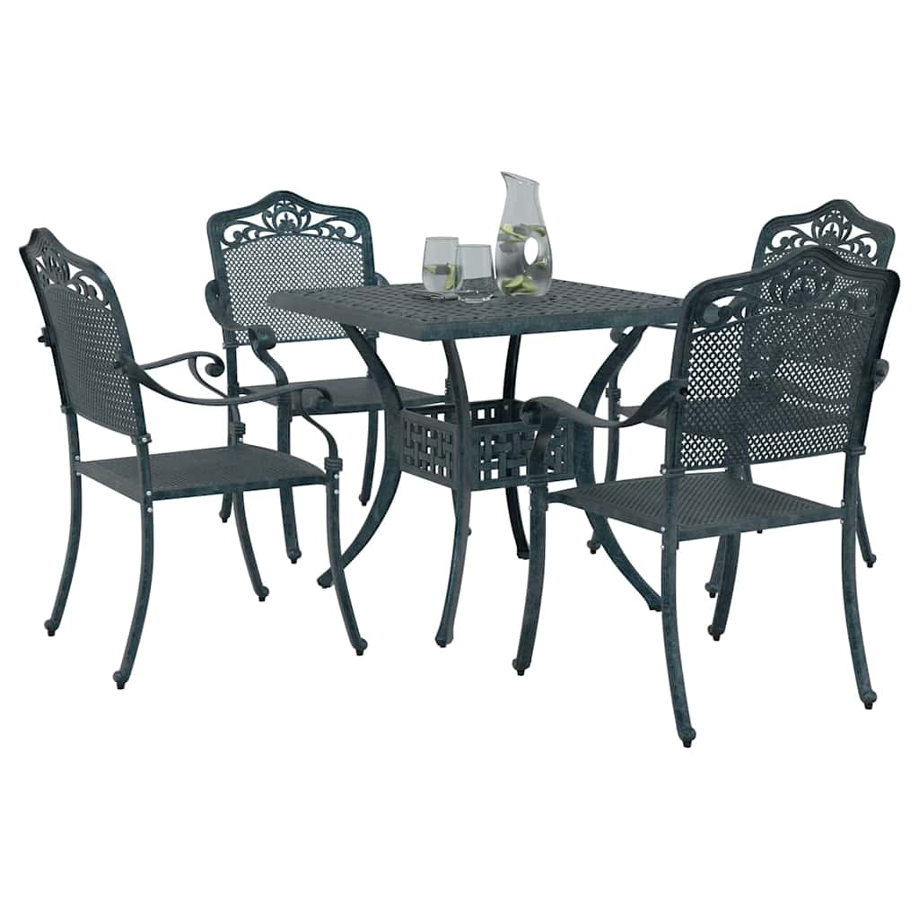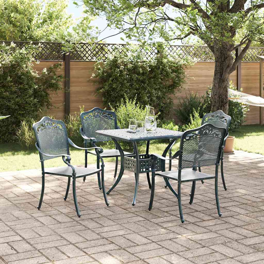- Kwaliteitsmaterialen: Deze tuinset is gemaakt van gegoten aluminium en heeft een stevige, gestructureerde oppervlakte die fijn aanvoelt. De aluminiumconstructie is sterk genoeg voor buitengebruik, zodat hij jarenlang mooi blijft in elke tuin.
