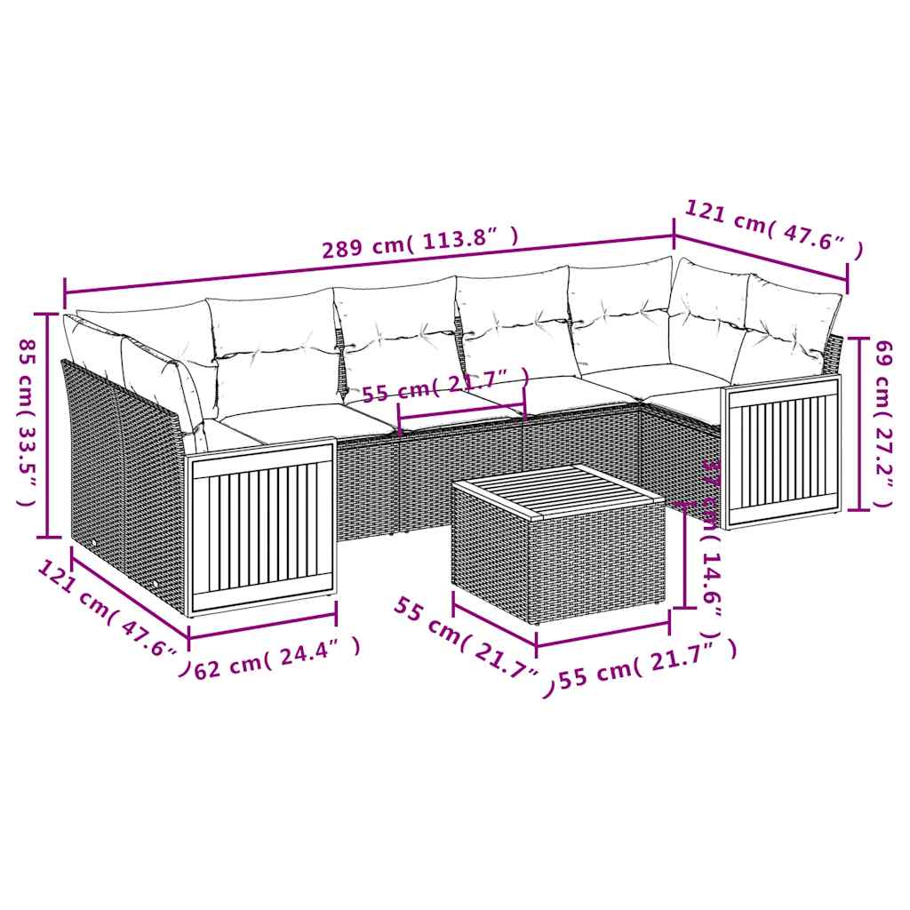 - Materiaal: PE-rotan, massief acaciahout met een olieafwerking