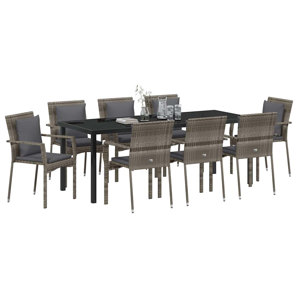 - Poly Rattan Materiaal: Deze meubelset is van hoogwaardig poly rattan, dat bekend staat om zijn duurzaamheid en fijne uitstraling. Het kan tegen verschillende weersomstandigheden en blijft er lange tijd goed uitzien.