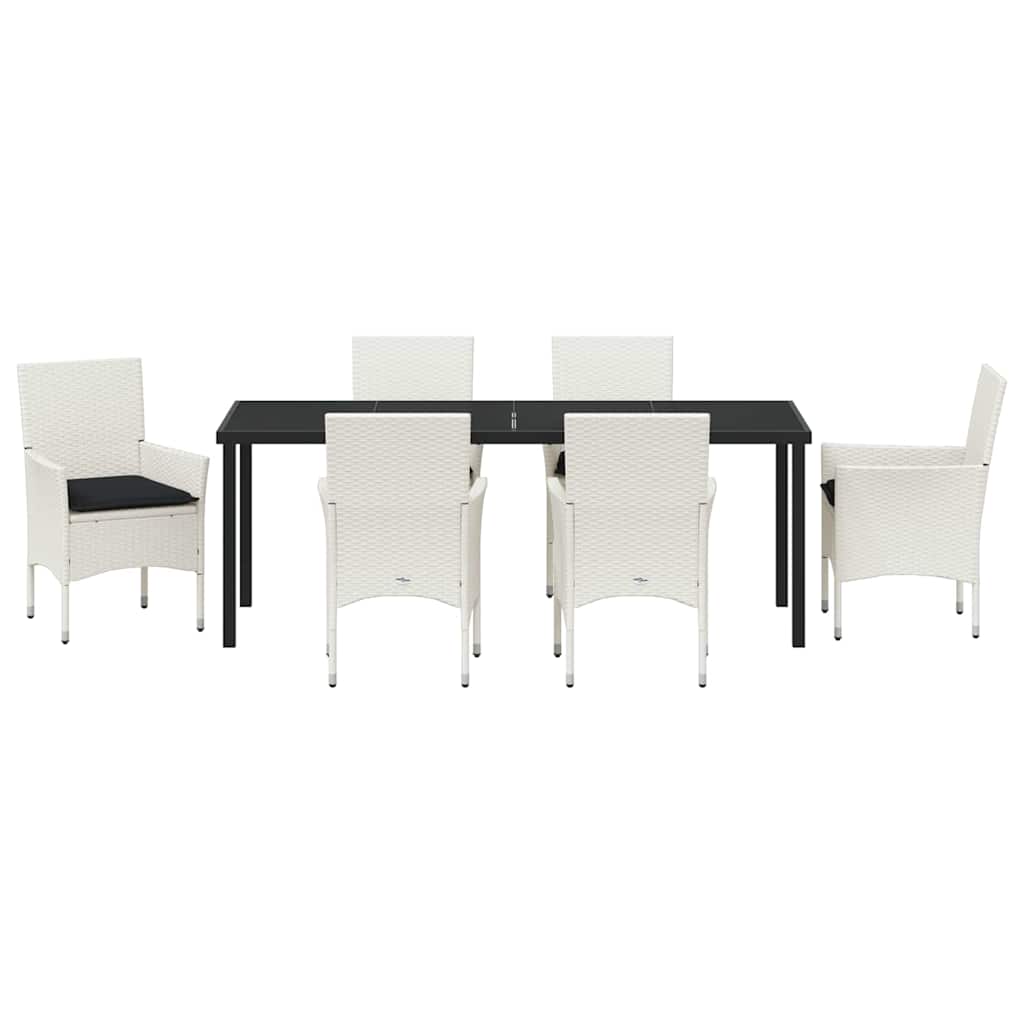 - Comfortabele Zitfuncties: Elke stoel is voorzien van buitenspeciale kussens van weerbestendige stof. De kussens hebben ritssluitingen, wat het verwijderen voor onderhoud vergemakkelijkt. Ontworpen om comfort te bieden zonder in te boeten op stijl, zijn deze stoelen perfect voor lange maaltijden of levendige tuinfeesten.