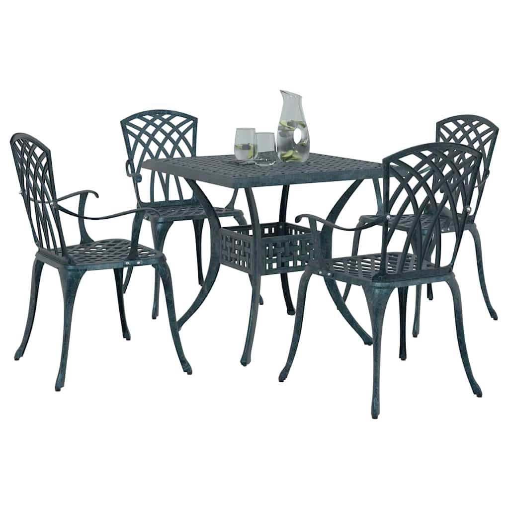 - Kwaliteitsmaterialen: Deze tuinset is gemaakt van gegoten aluminium en heeft een stevige, gestructureerde oppervlakte die fijn aanvoelt. De aluminiumconstructie is sterk genoeg voor buitengebruik, zodat hij jarenlang mooi blijft in elke tuin.