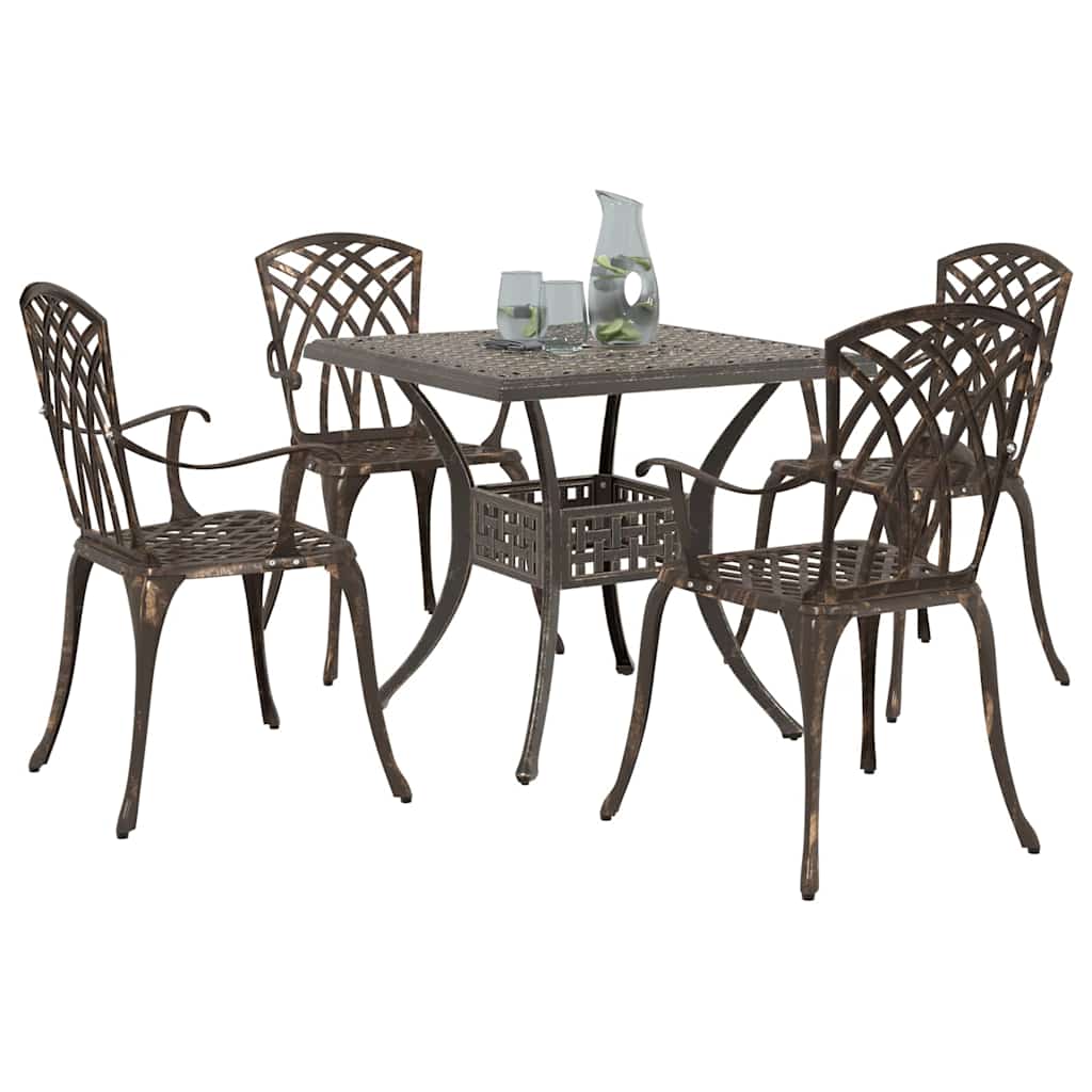 - Kwaliteitsmaterialen: Deze tuinset is gemaakt van gegoten aluminium en heeft een stevige, gestructureerde oppervlakte die fijn aanvoelt. De aluminiumconstructie is sterk genoeg voor buitengebruik, zodat hij jarenlang mooi blijft in elke tuin.