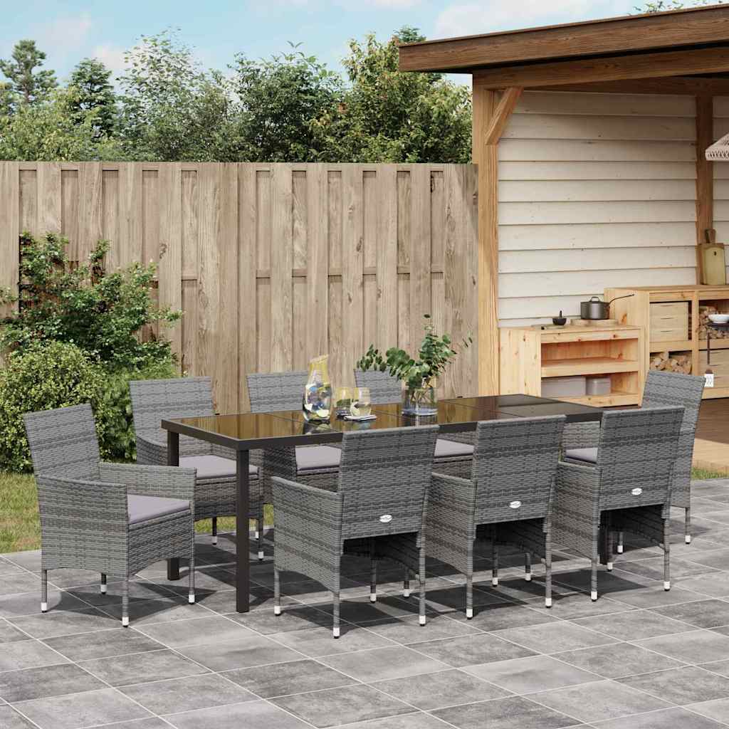 Deze Tuin Eettafel Set maakt je buitenbijeenkomsten nog leuker met zijn moderne, strakke ontwerp. Het creëert een chique en gezellige sfeer voor elke tuin of terras. Dankzij de mix van stijlvolle materialen en comfortabele details maak je van elk diner een relaxte ervaring met vrienden. Het ziet er goed uit en is praktisch, waardoor het de ultieme blikvanger is voor gezellige momenten buiten.