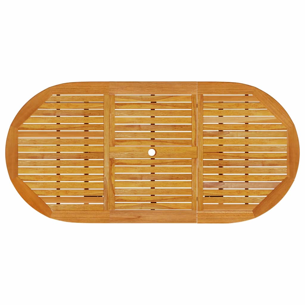 - Materialen: De set is gemaakt van Massief acaciahout, beroemd om zijn duurzaamheid en prachtige afwerking. De geoliede behandeling versterkt de natuurlijke kleur en beschermt tegen vocht, wat zorgt voor langdurigheid en schoonheid.