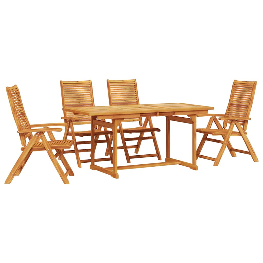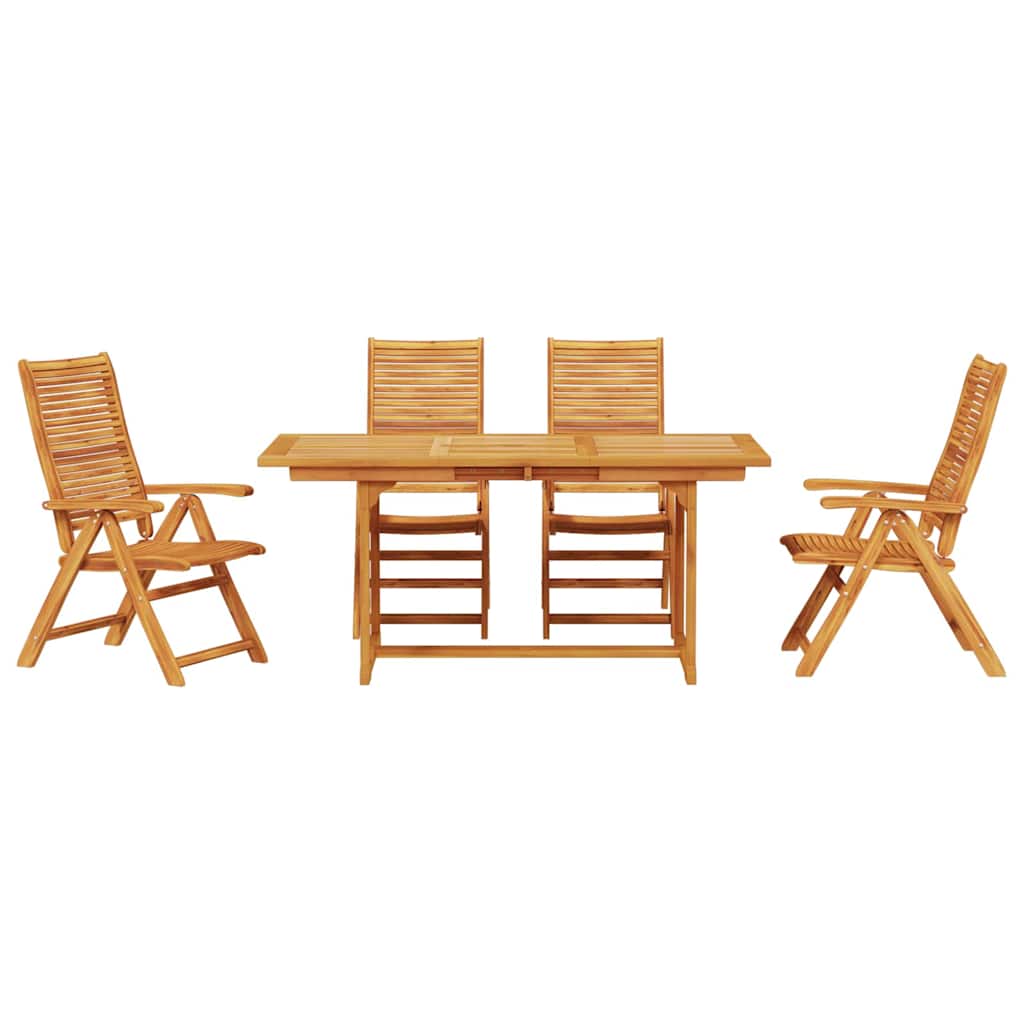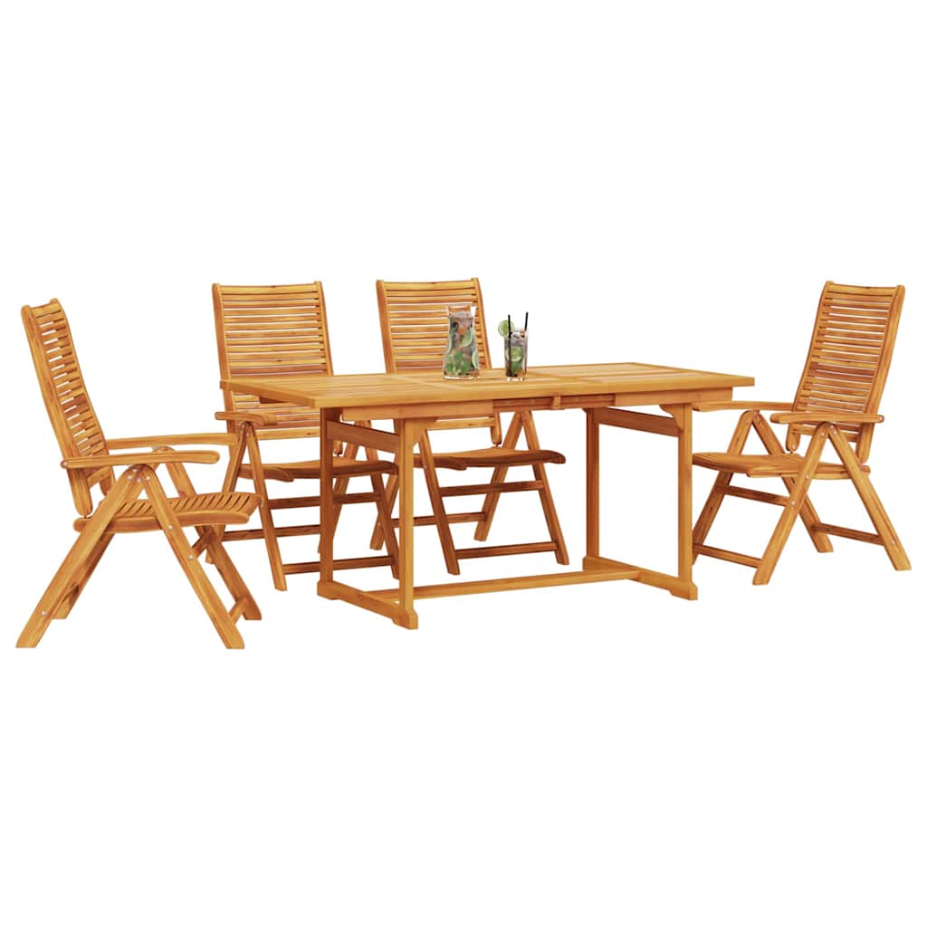 - Materialen: De set is gemaakt van Massief acaciahout, beroemd om zijn duurzaamheid en prachtige afwerking. De geoliede behandeling versterkt de natuurlijke kleur en beschermt tegen vocht, wat zorgt voor langdurigheid en schoonheid.