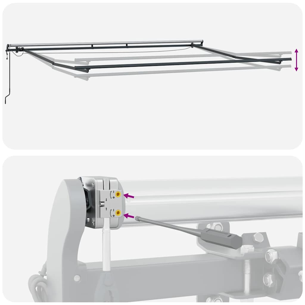 - Materialen: Gemaakt van topkwaliteit UV- en waterdichte stof, deze luifel is bestand tegen het weer. Het aluminium frame zorgt voor stabiliteit en een chique uitstraling, waardoor je de perfecte combinatie van functionaliteit en stijl hebt. Deze stevige constructie zorgt ervoor dat de luifel er goed uitziet en lang meegaat.
