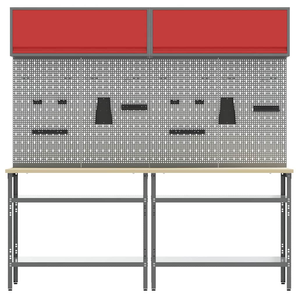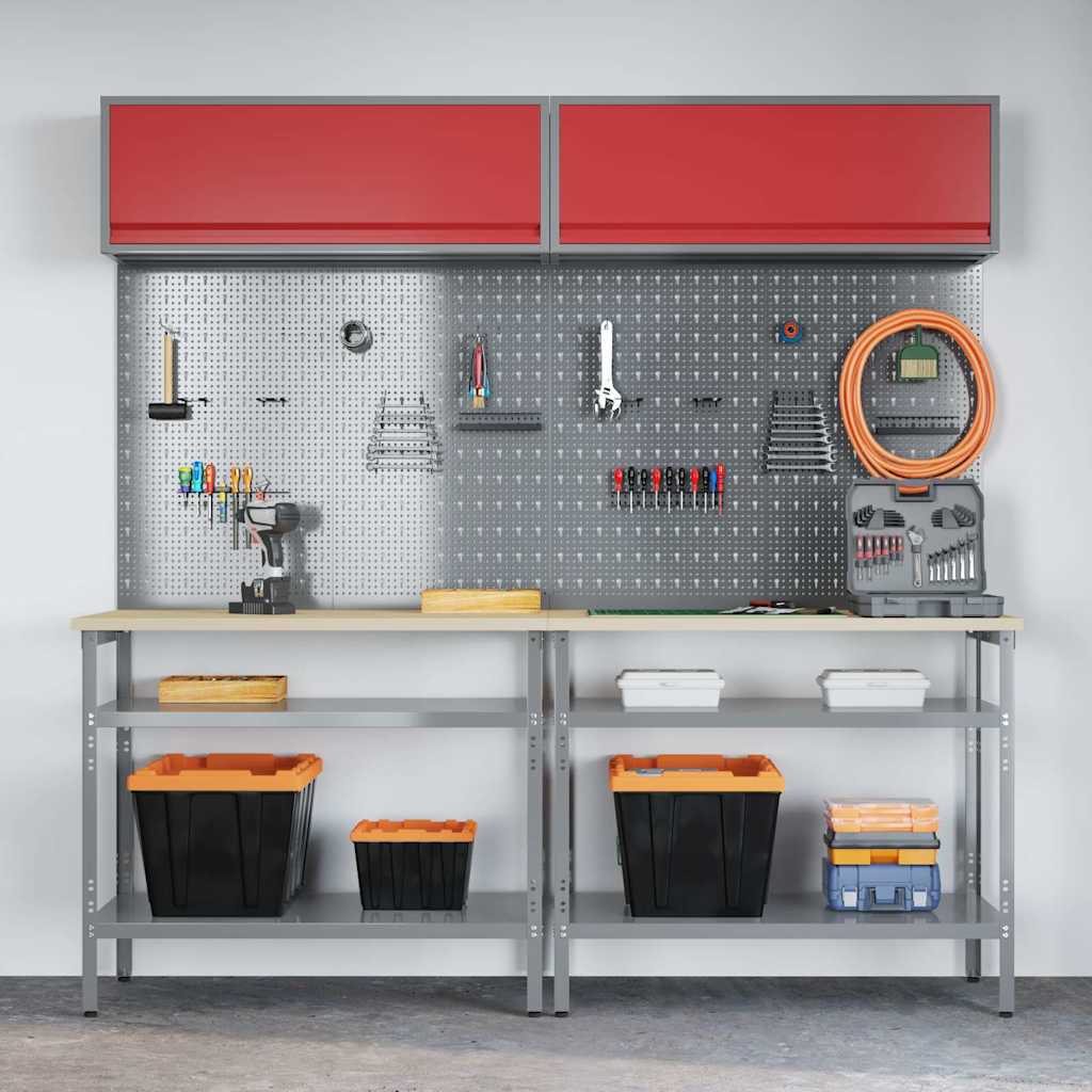 - Efficiënte Opslag Deze werkbank blinkt uit in opslagmogelijkheden. Dankzij de sterke schappen heb je genoeg ruimte om alles goed te organiseren, zodat je snel bij je gereedschap kunt en je workflow soepel blijft bij allerlei klussen.