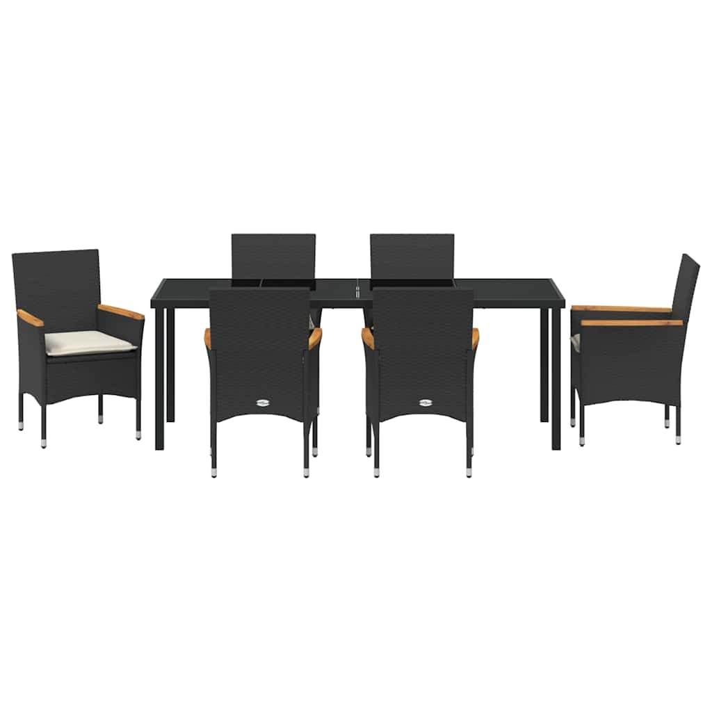 - Inbegrepen Onderdelen: Deze set komt met onderdelen zoals een glazen tafelblad dat mooi aansluit bij het geweven design. De comfortabele kussens zijn lekker dik voor extra gemak, en de stevige acaciahouten armleuningen geven een unieke touch - een slimme mix van stijl en functionaliteit voor een fijne ervaring.
