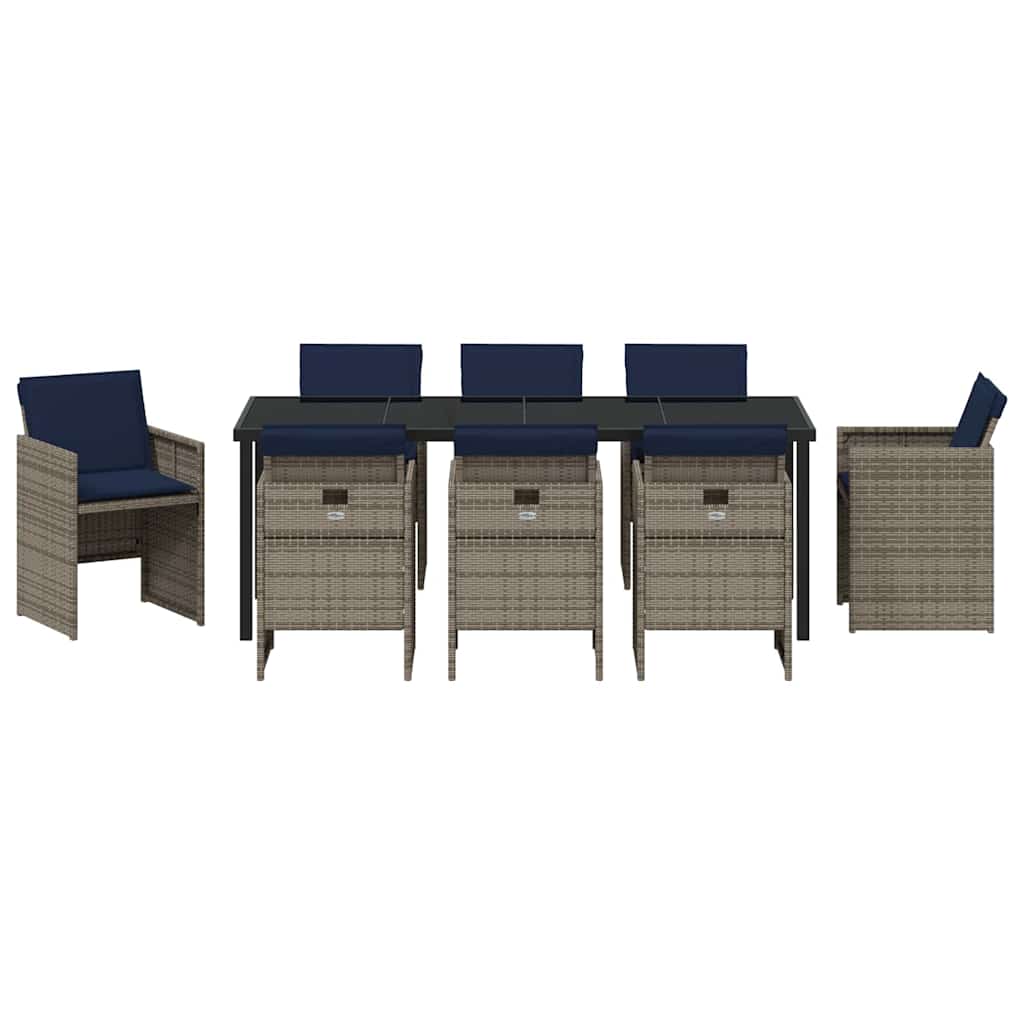 - Materialen: Deze eetset is gemaakt van UV-bestendig poly rattan, dus hij is stevig en blijft mooi, zelfs in de felle zon. Het sterke gepoedercoat stalen frame geeft extra kracht, zodat je op betrouwbare zitplekken kunt rekenen. Deze materialen zijn gekozen niet alleen om er goed uit te zien, maar ook om tegen het buitenleven te kunnen.