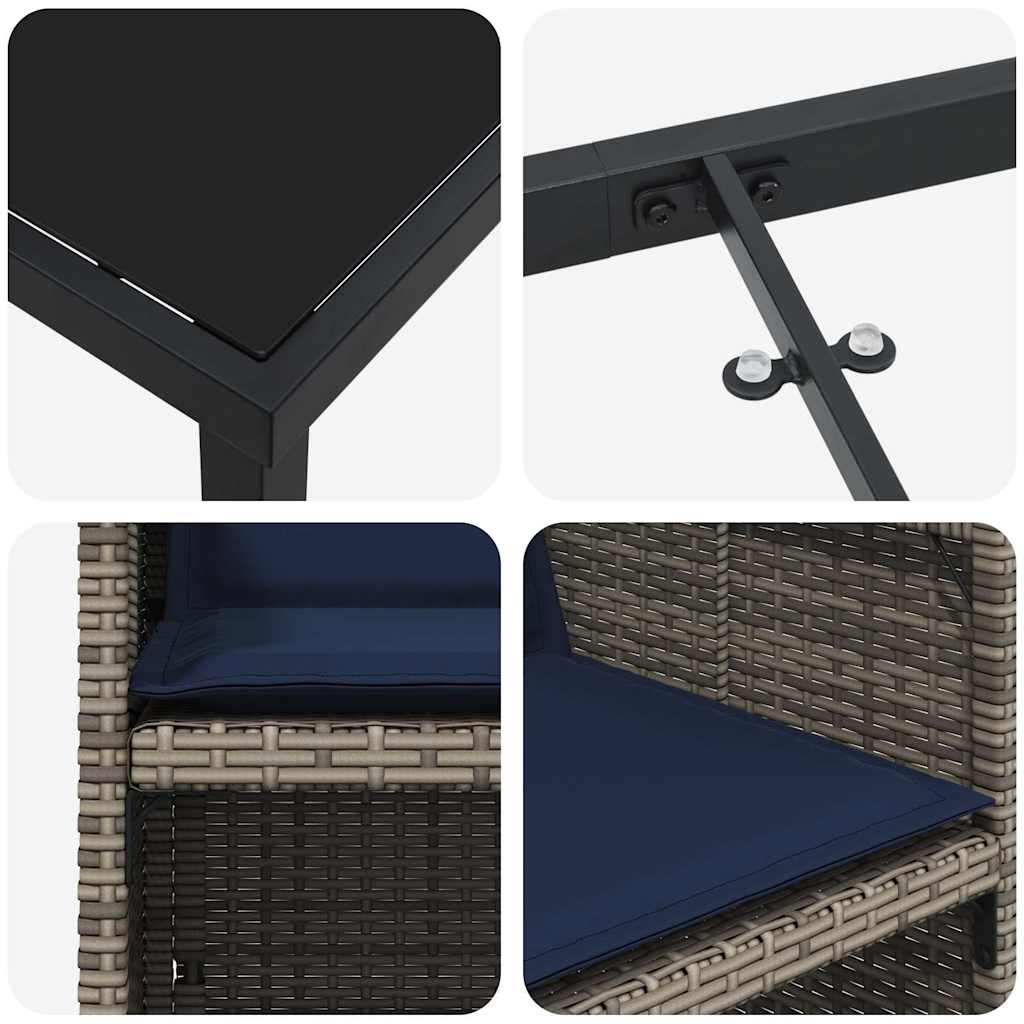 - Inclusief Componenten: Je krijgt mooi geweven stoelen met een poly rattan rug en comfortabele buitenkussens met flapsluitingen voor gemak. Het tafelblad van gehard glas zit netjes op het frame en biedt een glad en stijlvol oppervlak. Ook hebben de poten een mooi vierkant design van gepoedercoat staal voor stabiliteit en kracht.