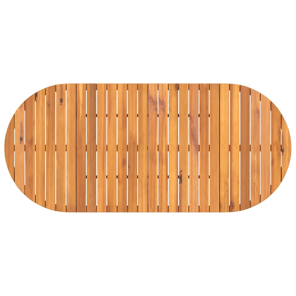 - Robuust en stabiel materiaal: Massief acaciahout staat bekend om zijn sterkte en duurzaamheid, aangevuld met unieke nerfpatronen die de visuele aantrekkingskracht versterken. De tafel is afgewerkt met een beschermende olielaag en is ontworpen voor buitengebruik. Het is bestand tegen de elementen en behoudt tegelijkertijd de prachtige houtnerf.