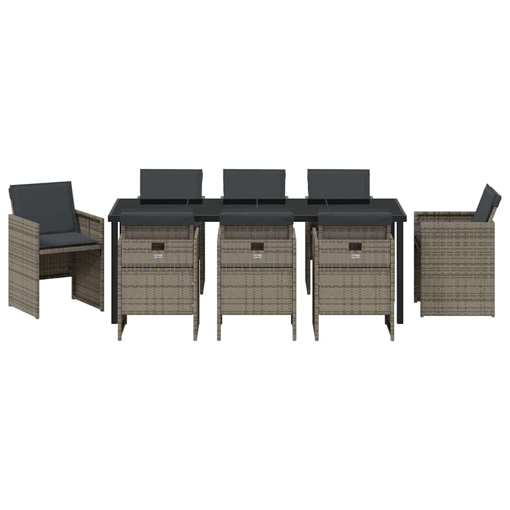 Deze Moderne Tuin Eettafelset is perfect voor buitenruimtes zoals tuinen of terrassen en heeft een schoon en eenvoudig ontwerp. Het ziet er niet alleen goed uit, maar is ook super praktisch, waardoor het een geweldige keuze is voor zomerbijeenkomsten, barbecues of relaxte familiediners buiten. Met een stijlvolle mix van poly rattan en staal creëert deze set een moderne en comfortabele sfeer die de charme van elke tuin verhoogt.