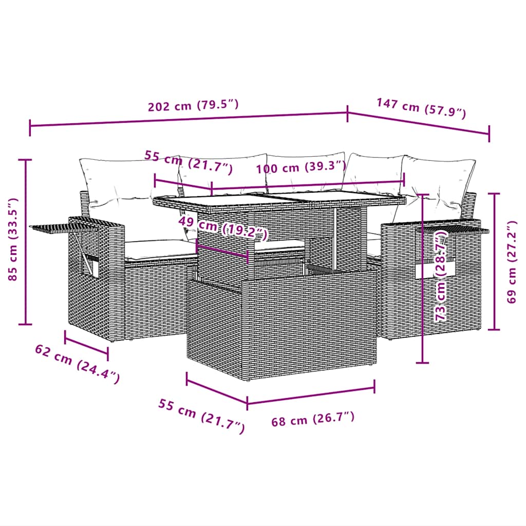 - Modulair ontwerp: Deze tuinmeubelset heeft een modulair ontwerp, waardoor hij volledig flexibel en gemakkelijk te verplaatsen is, zodat u een tuinmeubelopstelling op maat kunt creëren.
