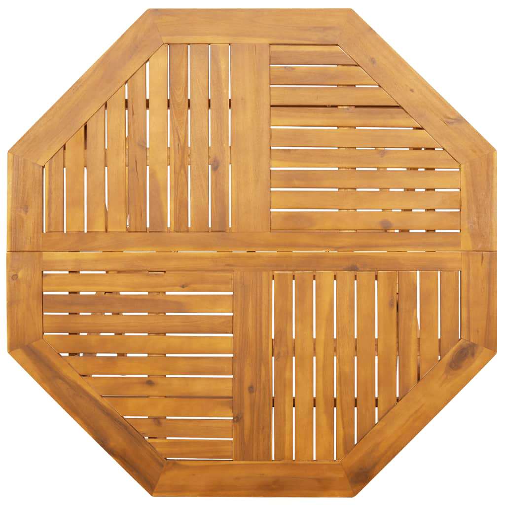 - Materialen: Gemaakt van massief acaciahout, bekend om zijn duurzaamheid en veerkracht. Dit materiaal is ideaal voor buitensituaties en biedt een natuurlijke weerstand tegen slijtage en verrotting. De geoliede afwerking verbetert de rijke uitstraling van het hout en biedt extra bescherming tegen vocht.