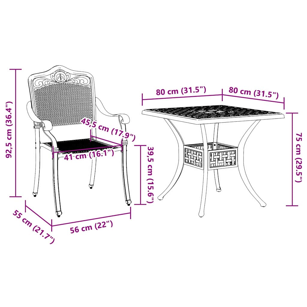 - Functioneel ontwerp: Met zijn traditionele stijl en klassieke details nodigt de set je uit om te genieten van rustige ochtenden of levendige diners buiten. Hij is makkelijk op te zetten, waardoor het een slimme keuze is voor elk terras, dat looks en functionaliteit combineert voor je ontspanningstijd en sociale bijeenkomsten.