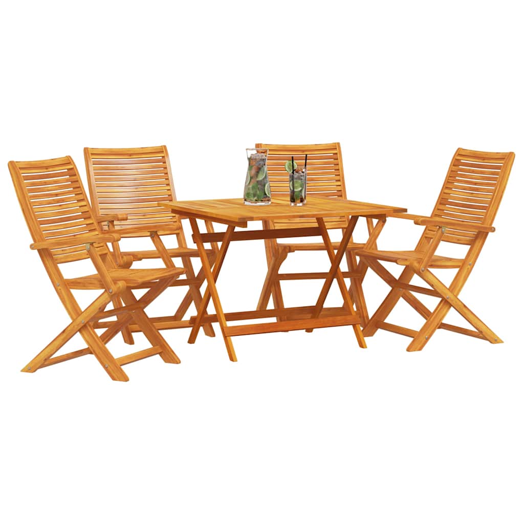 - Constructie van de componenten: Elk element van de set, waaronder de stevige acaciahouten tafel en stoelen, voorkomt wiebelen en verhoogt het comfort met afgewerkte, toonbare ruggen. Dit zorgt voor gebruiksgemak en bevordert een comfortabele en uitnodigende eetervaring.