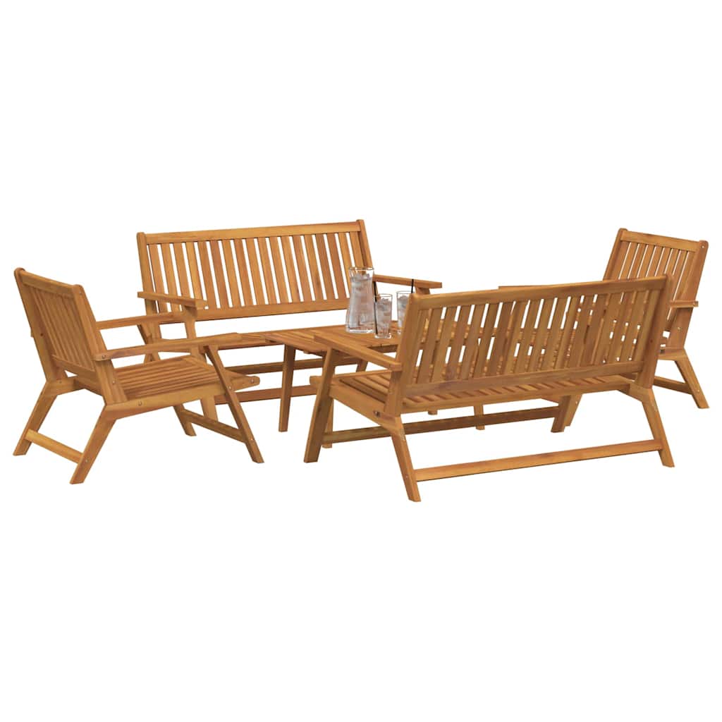 - Materiaal Excelent: Deze eetset is gemaakt van hoogwaardig acaciahout en is gericht op kracht en duurzaamheid. Het hout ziet er niet alleen chic uit, maar kan ook goed tegen de elementen. De rijke bruine kleur past bij verschillende tuinstijlen en voegt elegantie toe.