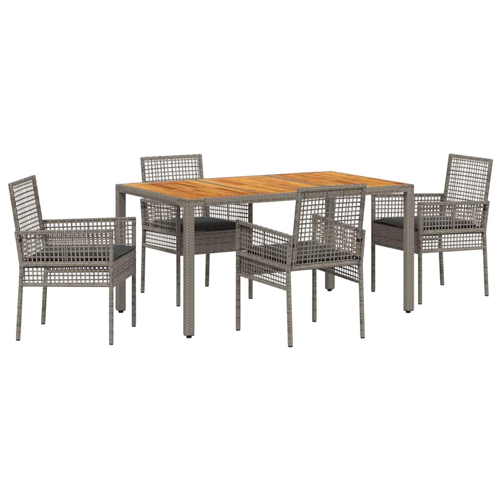 - Materialen: Deze tuin eettafel set is gemaakt van poly rattan, wat zorgt voor een strak oppervlak dat moderne vibes en stevige duurzaamheid combineert. Poly rattan is sterk tegen slecht weer, zodat het er door de seizoenen heen goed uit blijft zien. Het materiaal biedt textuur en een hedendaags gevoel dat de uitstraling van je tuin versterkt en tegelijkertijd flexibel blijft, wat helpt om scheuren en breuken te voorkomen.