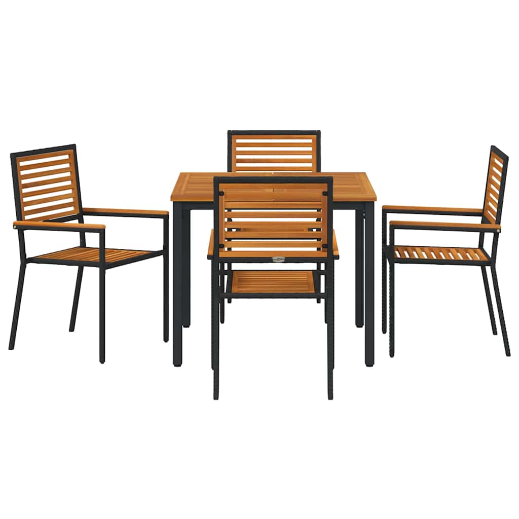 - Duurzame Materialen: De Moderne Tuin Eettafelset combineert slim poly rattan met massief acaciahout voor een sterke en duurzame constructie. Het poly rattan zorgt voor een moderne uitstraling, terwijl het acaciahout voor een warme, natuurlijke vibe zorgt die goed bestand is tegen slijtage en seizoensveranderingen.