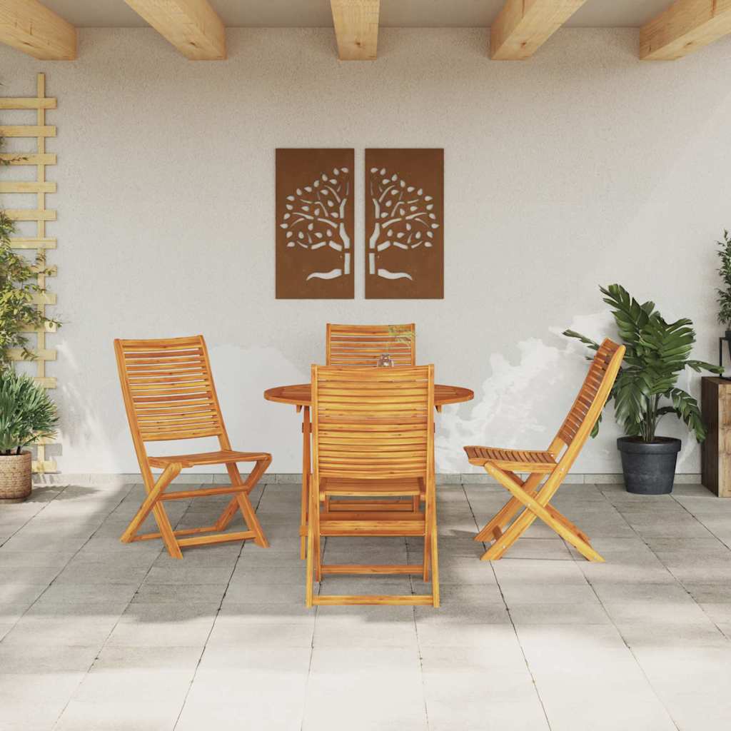 - Constructie van de componenten: Elk element van de set, waaronder de stevige acaciahouten tafel en stoelen, voorkomt wiebelen en verhoogt het comfort met afgewerkte, toonbare ruggen. Dit zorgt voor gebruiksgemak en bevordert een comfortabele en uitnodigende eetervaring.