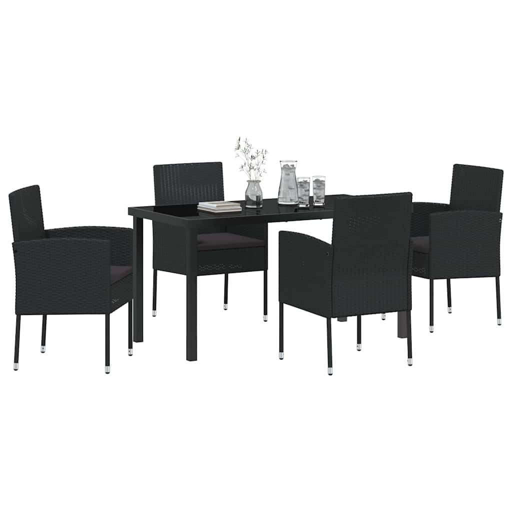 - Moderne uitstraling: Met zijn geweven textuur en strakke zwarte afwerking, geeft deze set een moderne touch die fantastisch staat in elke ruimte. De rechte lijnen en het simpele ontwerp zorgen voor een chique gevoel in je buitenruimtes, wat een prettige sfeer creëert die gasten zal imponeren en je helpt te ontspannen.