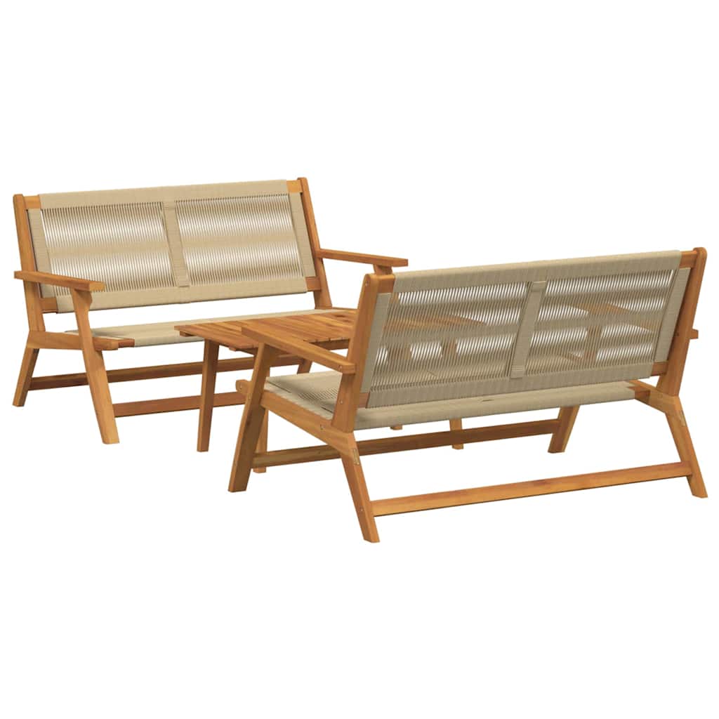 - Inclusief componenten: Deze complete set heeft ergonomische armleuningen en stevige frames, gemaakt van massief acaciahout. De gevoerde stoelen van poly rattan bieden extra comfort en duurzaamheid. Het geheel werkt perfect samen, waardoor je tuin een fijne plek wordt waar stijl en functie hand in hand gaan.