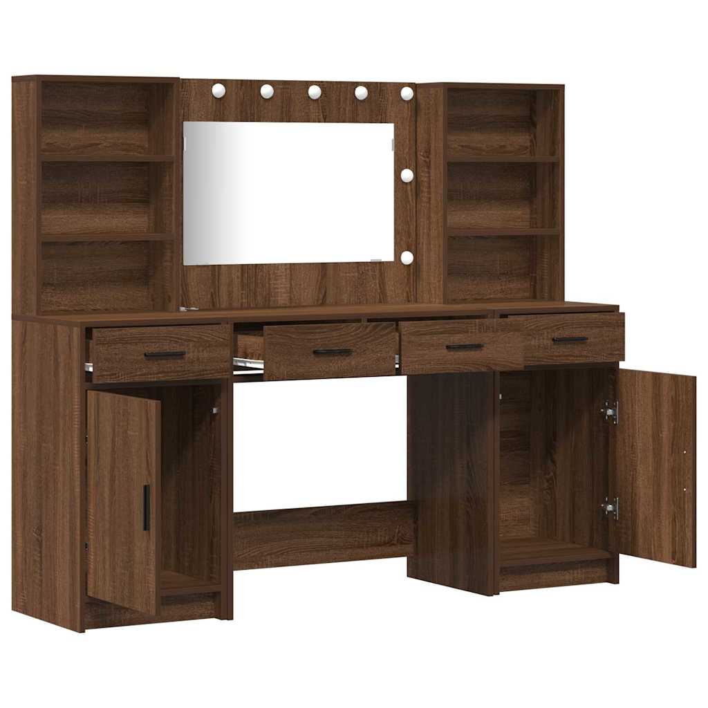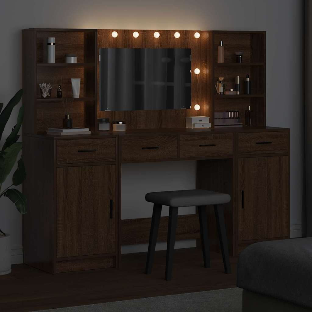 Deze mooie kaptafel set mix modern elegant met een slim ontwerp, waardoor het een perfecte aanvulling is voor elke slaapkamer. De slanke rechthoekige vorm geeft je veel opbergruimte terwijl het er trendy uitziet. Gemaakt van engineered hout met gladde oppervlakte, is het een mooi en praktisch stuk dat aan al je verzorgingsbehoeften voldoet.