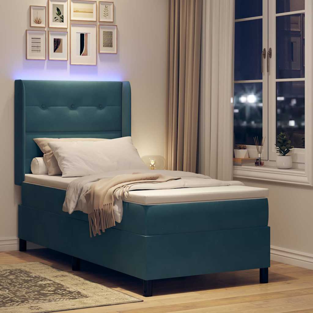 Dit fluwelen boxspringbed met matras en LED is een geweldige combinatie van modern design en praktische functie, ideaal voor iedereen die zowel comfort als stijl in zijn slaapkamer wil. Met zijn strakke, rechthoekige vorm heeft het een minimalistische uitstraling met schone lijnen en een uitnodigende vibe. Dit bed biedt een luxe slaapervaring dankzij de zachte matras en de chique fluwelen look. Of je nu lekker aan het chillen bent of een dutje doet, dit bed maakt je slaapkamer echt prachtig.