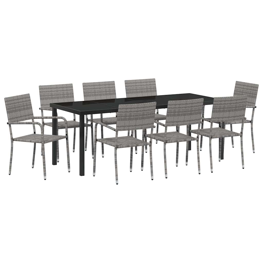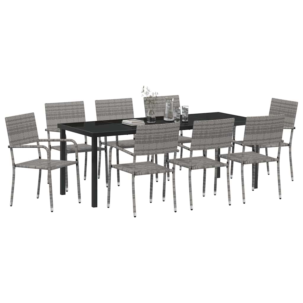 Deze moderne tuinmeubelset, vooral gemaakt van poly rattan, is een echte aanrader voor je tuin of terras. Met zijn strakke lijnen en praktische ontwerp is het perfect voor allerlei buitengelegenheden, van casual barbeques met de familie tot chique diners. De rijke textuur en het doordachte design zorgen voor een comfortabele plek om te ontspannen en te entertainen.