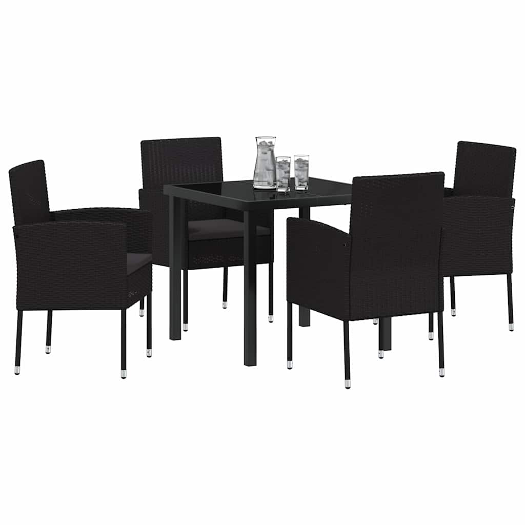 - Moderne uitstraling: Met zijn geweven textuur en strakke zwarte afwerking, geeft deze set een moderne touch die fantastisch staat in elke ruimte. De rechte lijnen en het simpele ontwerp zorgen voor een chique gevoel in je buitenruimtes, wat een prettige sfeer creëert die gasten zal imponeren en je helpt te ontspannen.